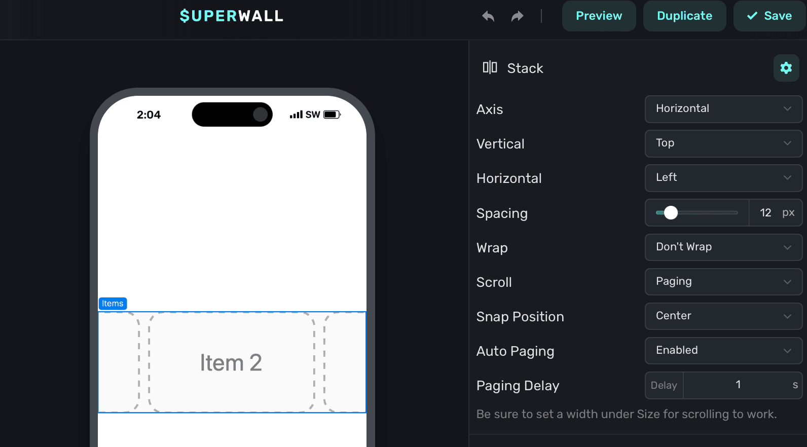 • Finally, Paging Delay is intentionally set low to help with designing its content. Set it to a higher value to see the carousel in action.