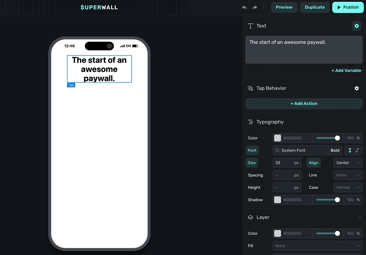 First off, to simply assign a variable without a condition, you still use the dynamic values editor. For example, if you want some text component's color to match something you have in your theme — just select it and don't insert any rule.