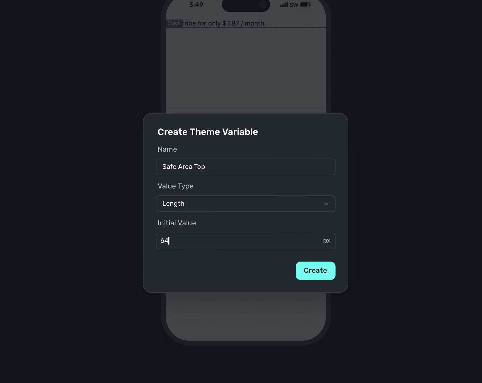 Variables you add here are static, meaning they don't react to device parameters and update their values. This is useful for thing you likely want to stay the same, regardless if light or dark mode is on, no matter the size of the device, etc.