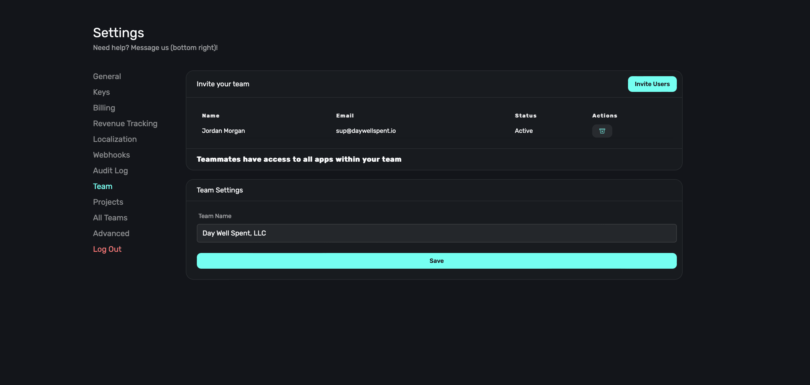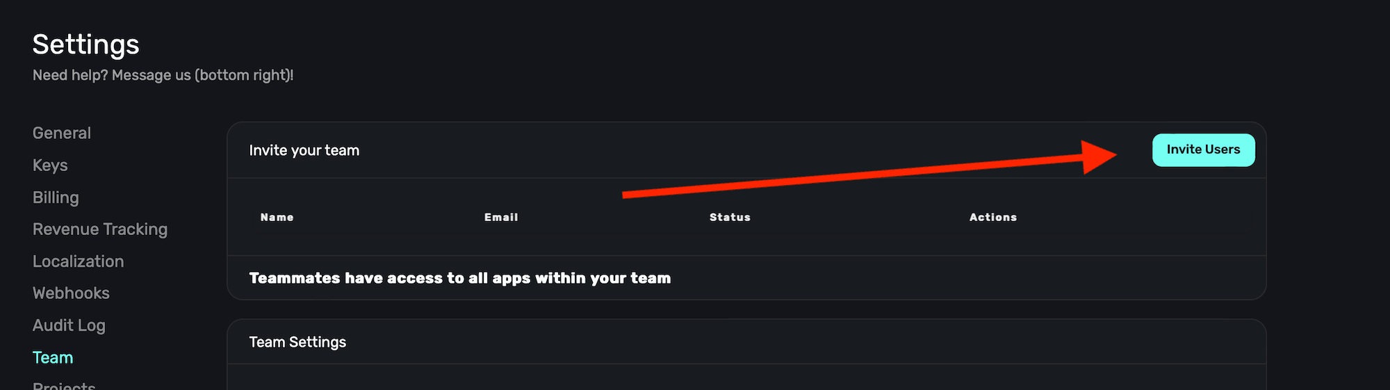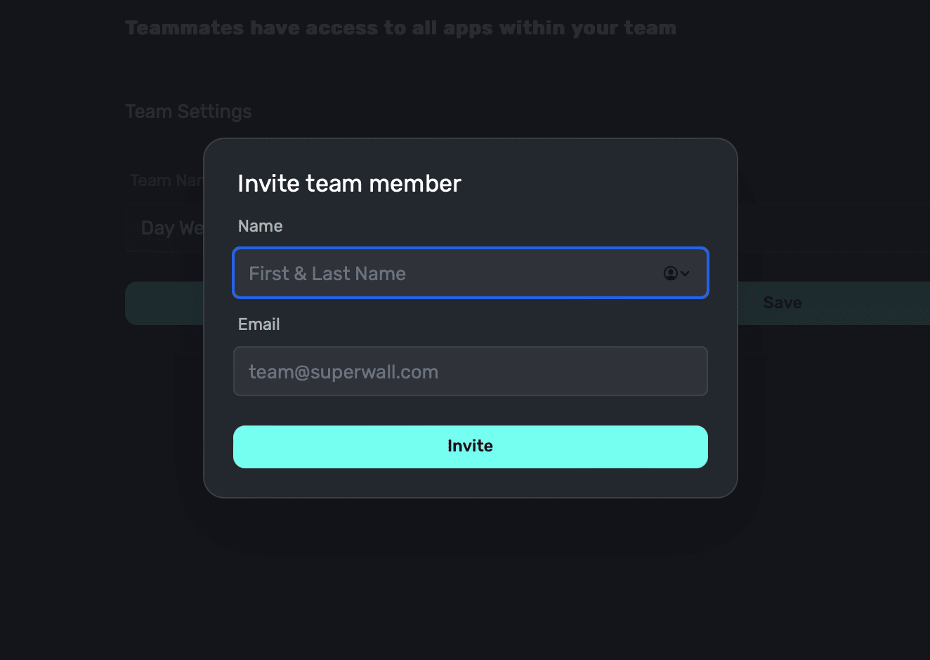 Team members have access to all of your apps within Superwall, making collaboration seamless.